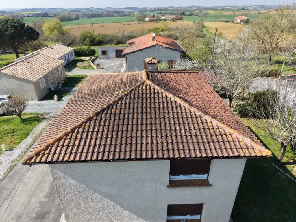 Nettoyage par drone de toiture en Tuiles terre cuite : retrouver l’éclat d’antan